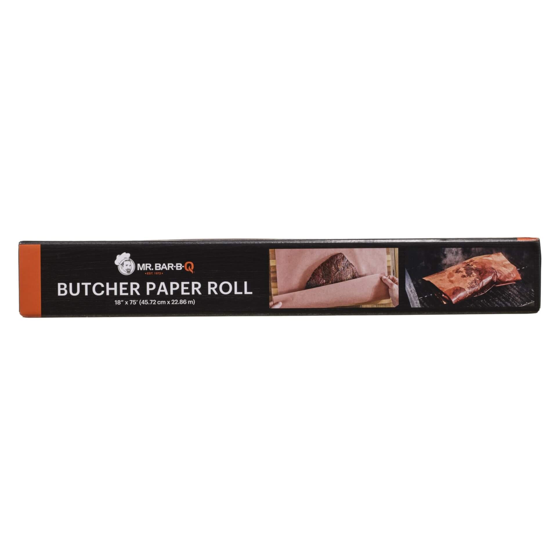 This all-natural, food-grade butcher paper comes in an 18-inch x 75-foot roll in a serrated color box and is durable and versatile for wrapping and storing meat, covering tables, lining cookware, and wrapping smoked meats to retain juices while preserving a crisp bark.