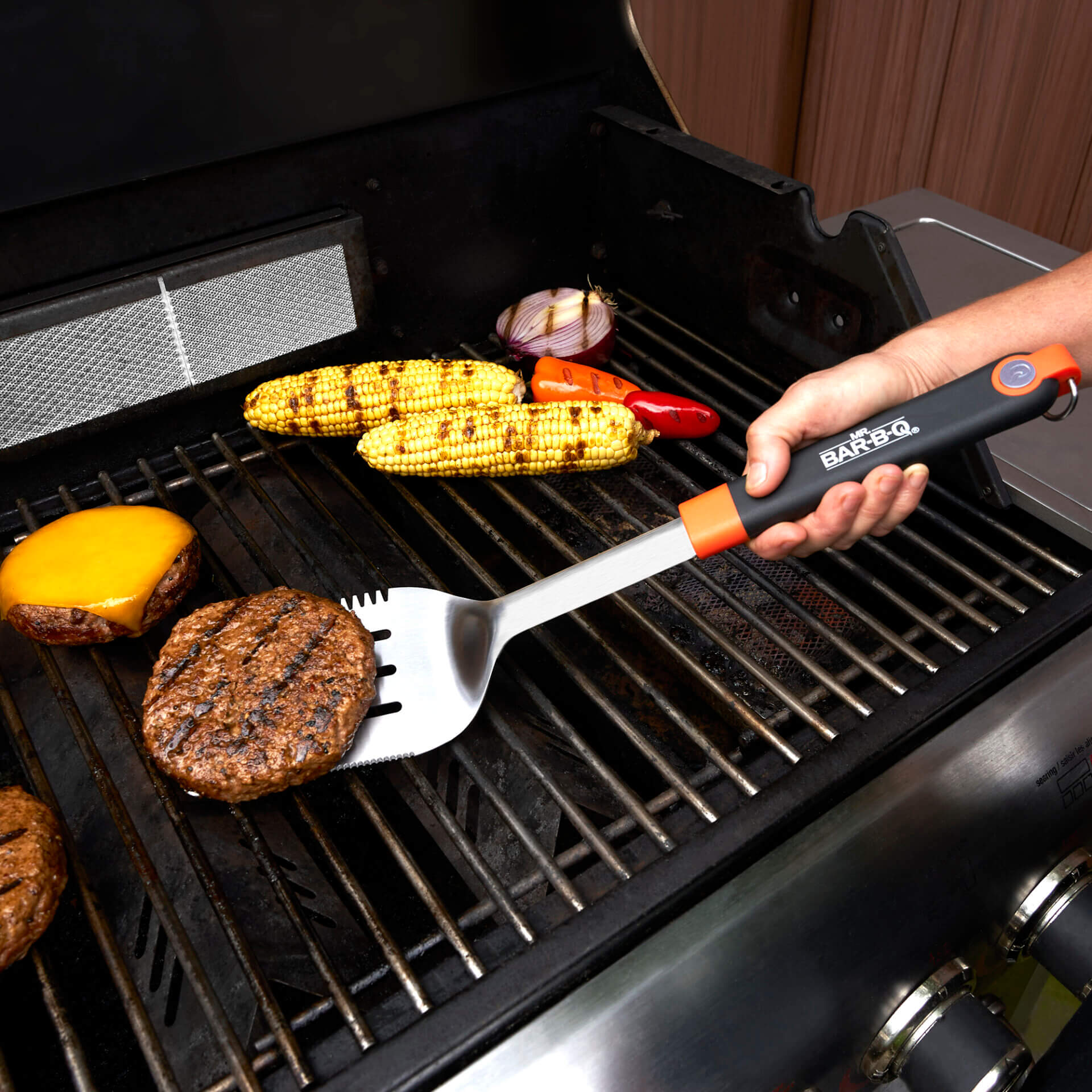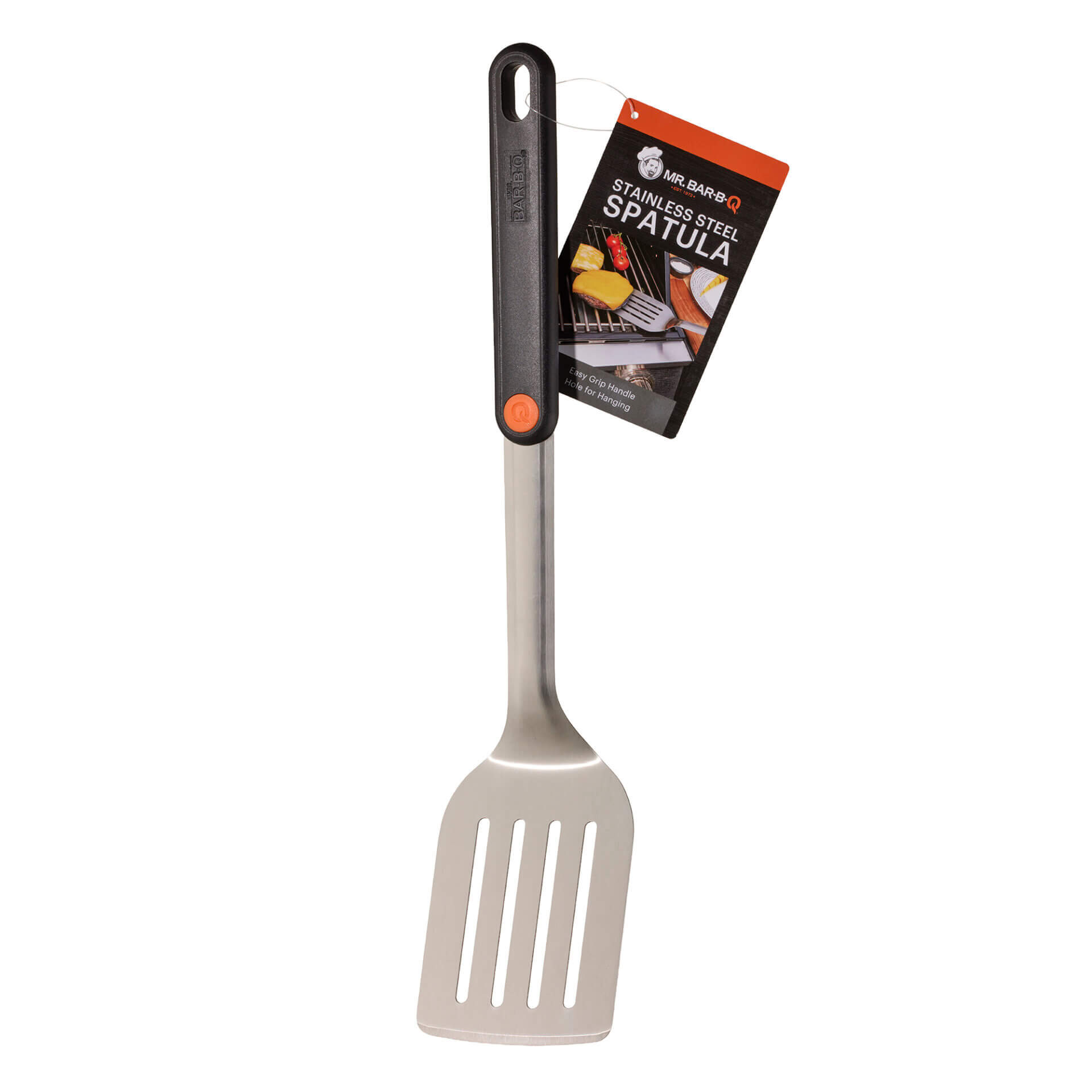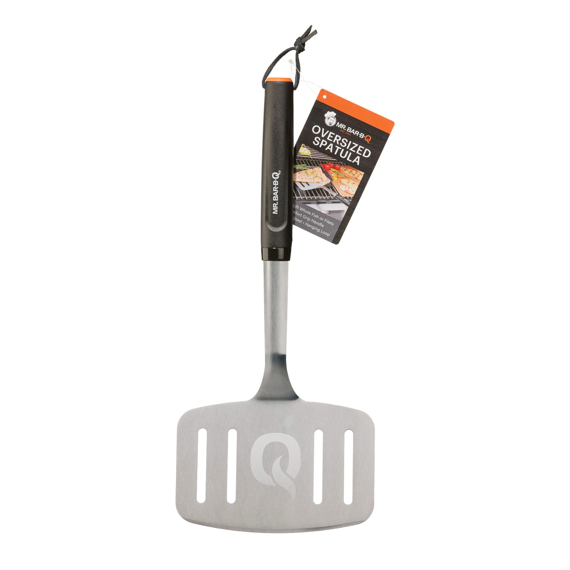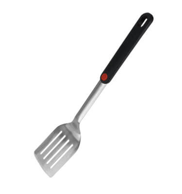 The Deluxe Stainless Spatula features stainless steel construction, a unique “Q Branded” patented handle, and a non-slip, professionally balanced design.