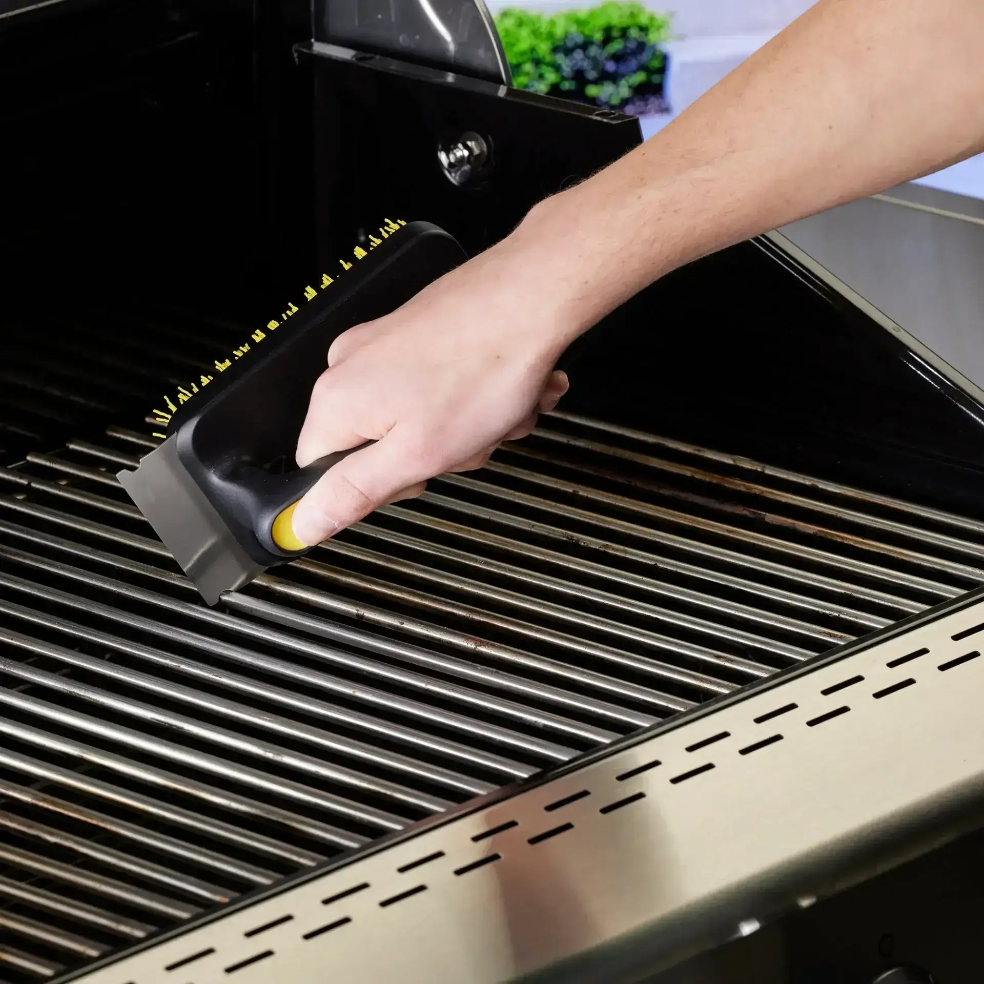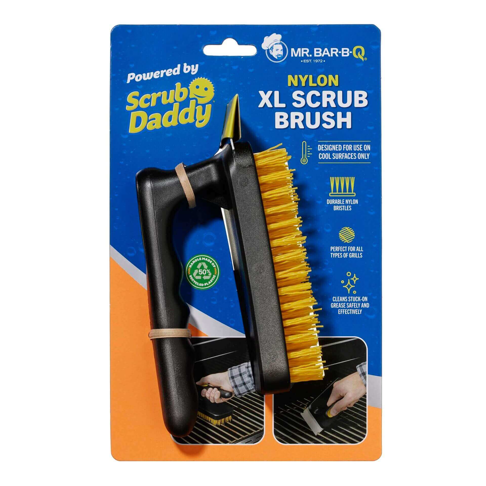 Keep your grill clean and ready for your next cookout with the Mr. Bar-B-Q Nylon XL Grill Scrub Brush, powered by Scrub Daddy. This heavy-duty brush features durable, long-lasting nylon bristles that are safe for use on cool grill surfaces and compatible with all types of grills, offering an excellent alternative to stainless steel. It effectively removes burnt-on food residue, and for extra tough spots, a built-in steel grid scraper provides additional cleaning power. The comfortable, ergonomic handle is made with 50% recycled plastic, contributing to a more sustainable choice for your grilling essentials.