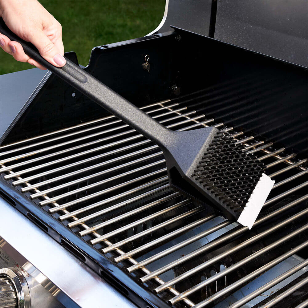 When one side isn’t enough, the Oversized Dual Bristle Grill Brush by Mr. Bar-B-Q® delivers maximum coverage and powerful cleaning to keep your grill in top shape. Designed with 4x stainless steel bristle strength on both sides, this oversized brush tackles grease, residue, and stubborn burnt-on food with ease. Engineered for safer cleaning, the bristles are rigorously tested to help minimize the risk of dislodging. Independently tested by third-party labs to meet industry safety standards, this grill brush provides confidence every time you clean. The integrated metal scraper adds extra cleaning power to help achieve a truly spotless grill.