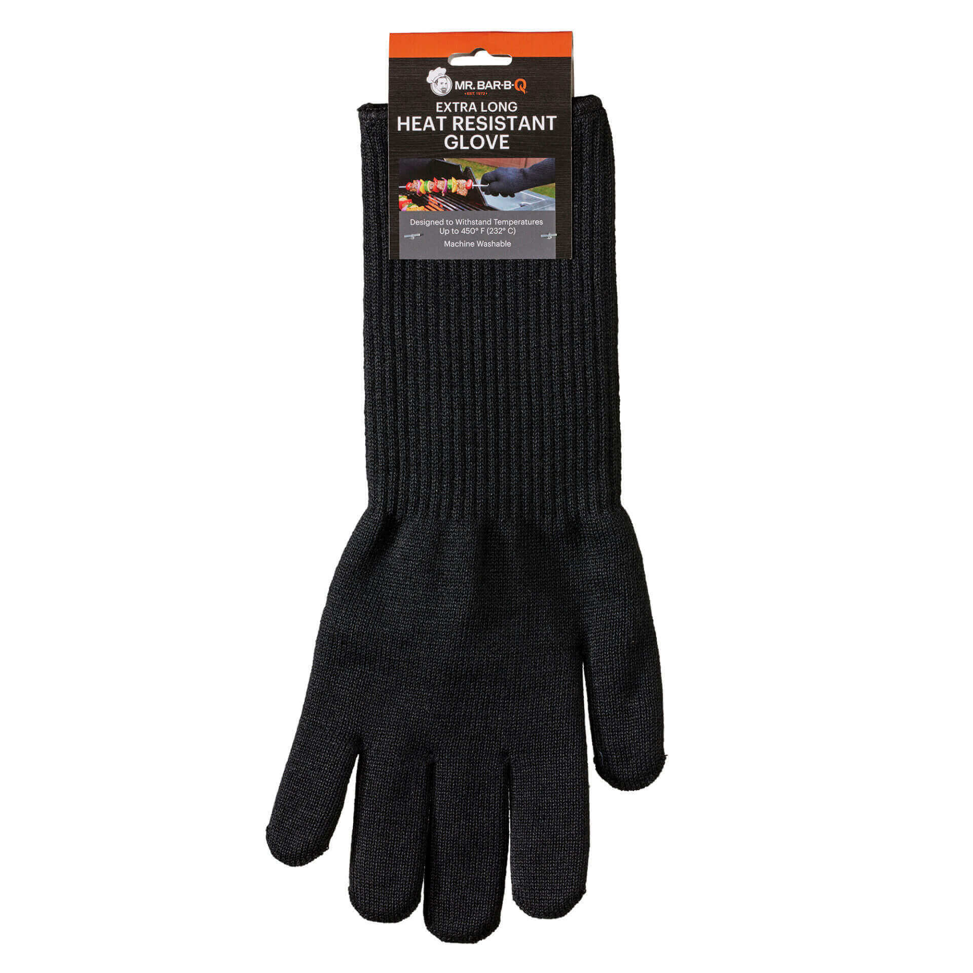 Keep safe from the heat with this Premium Barbecue Mitt by Mr. Bar-B-Q. It’s heat-resistant, fire-retardant and made from thick quilted cotton. Designed to fit the full length of your arm and hand. One size fits all.