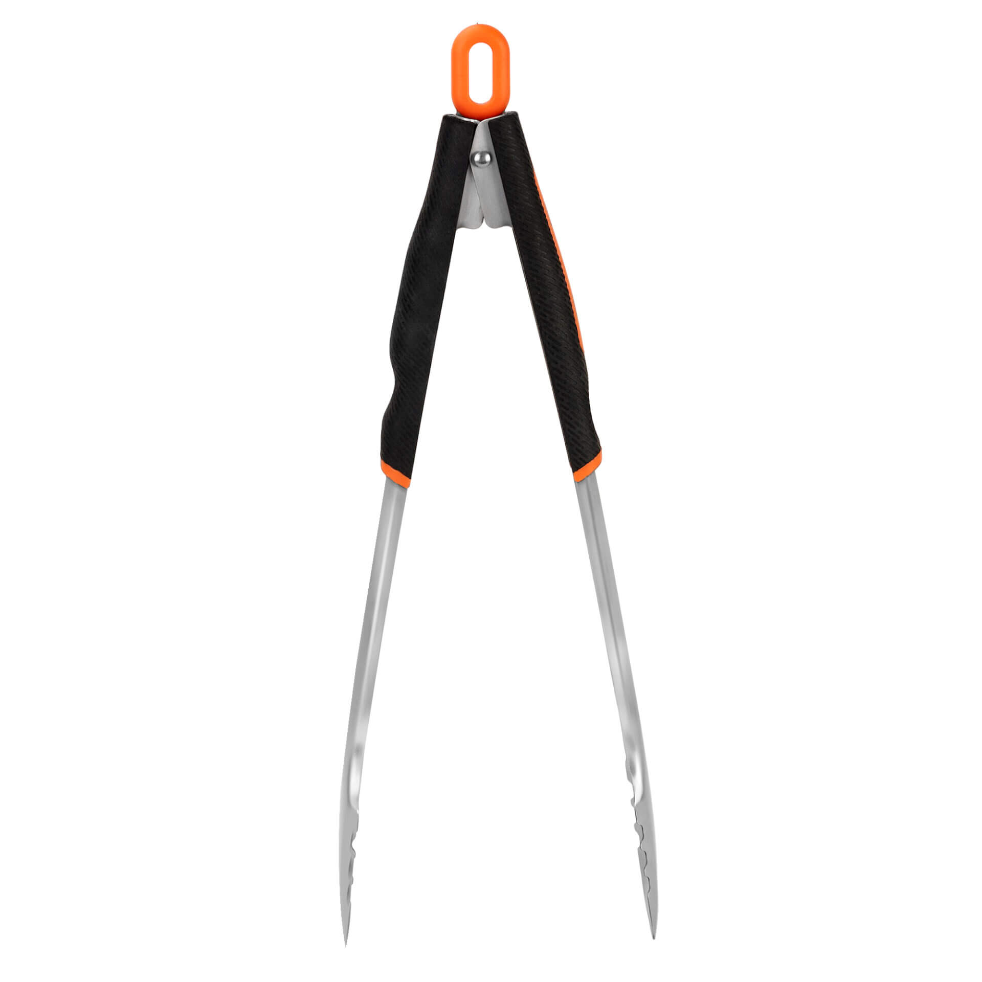• Stainless steel locking grill/griddle tongs with stay cool TPR handle.